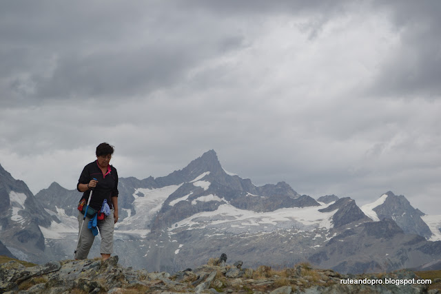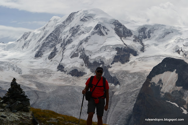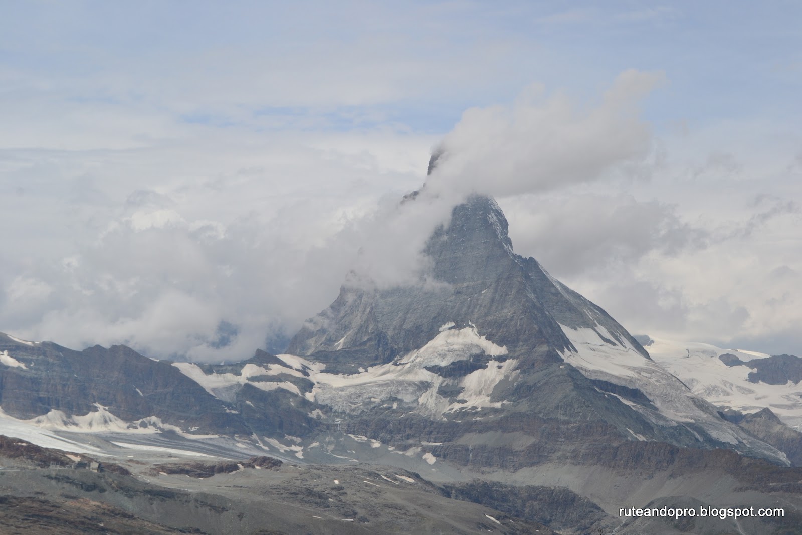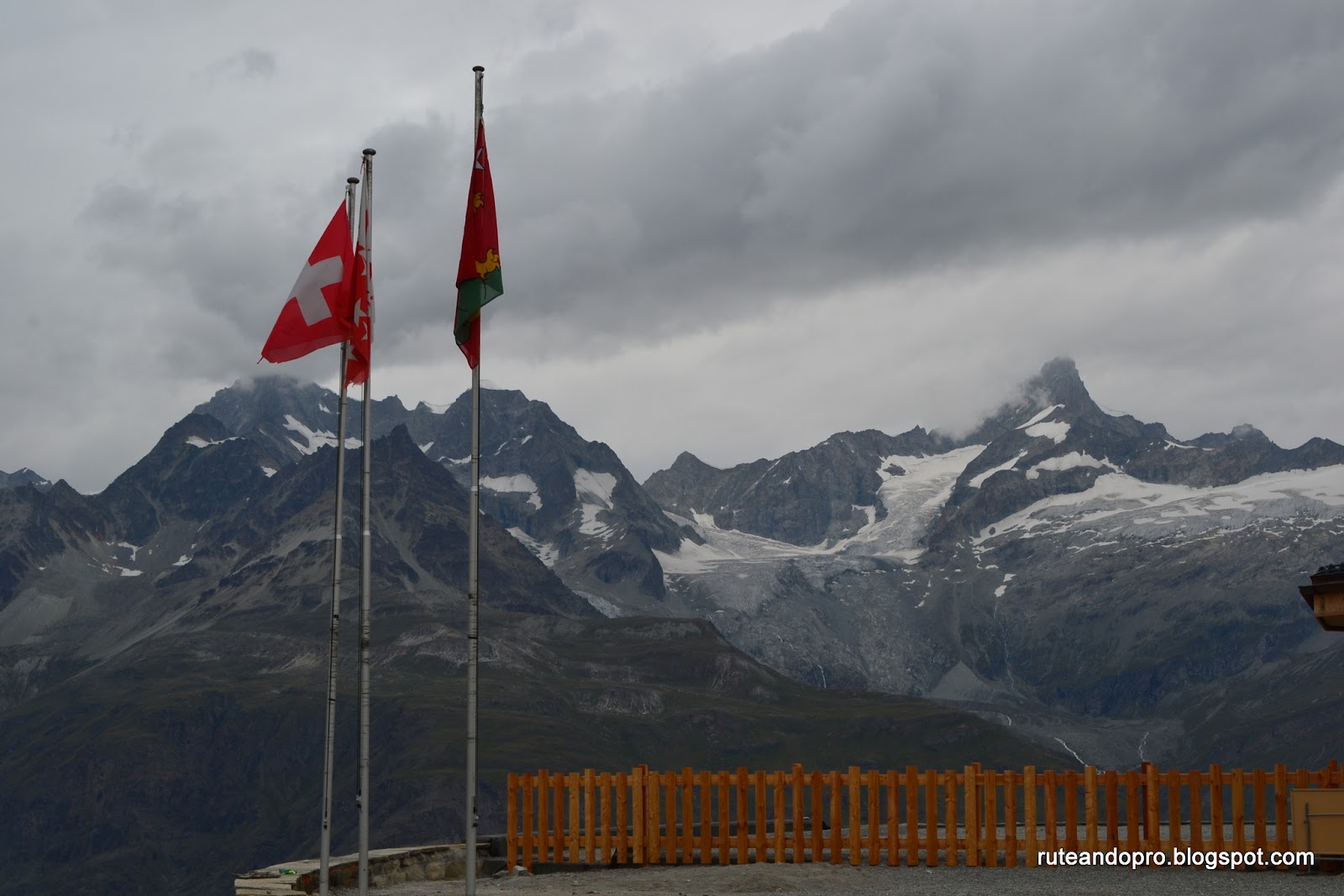 Las vistas desde arriba son increibles con el Cervico (Matterhorn) al fondo y el glaciar del Monte Rosa.
