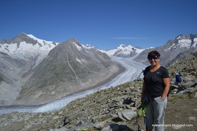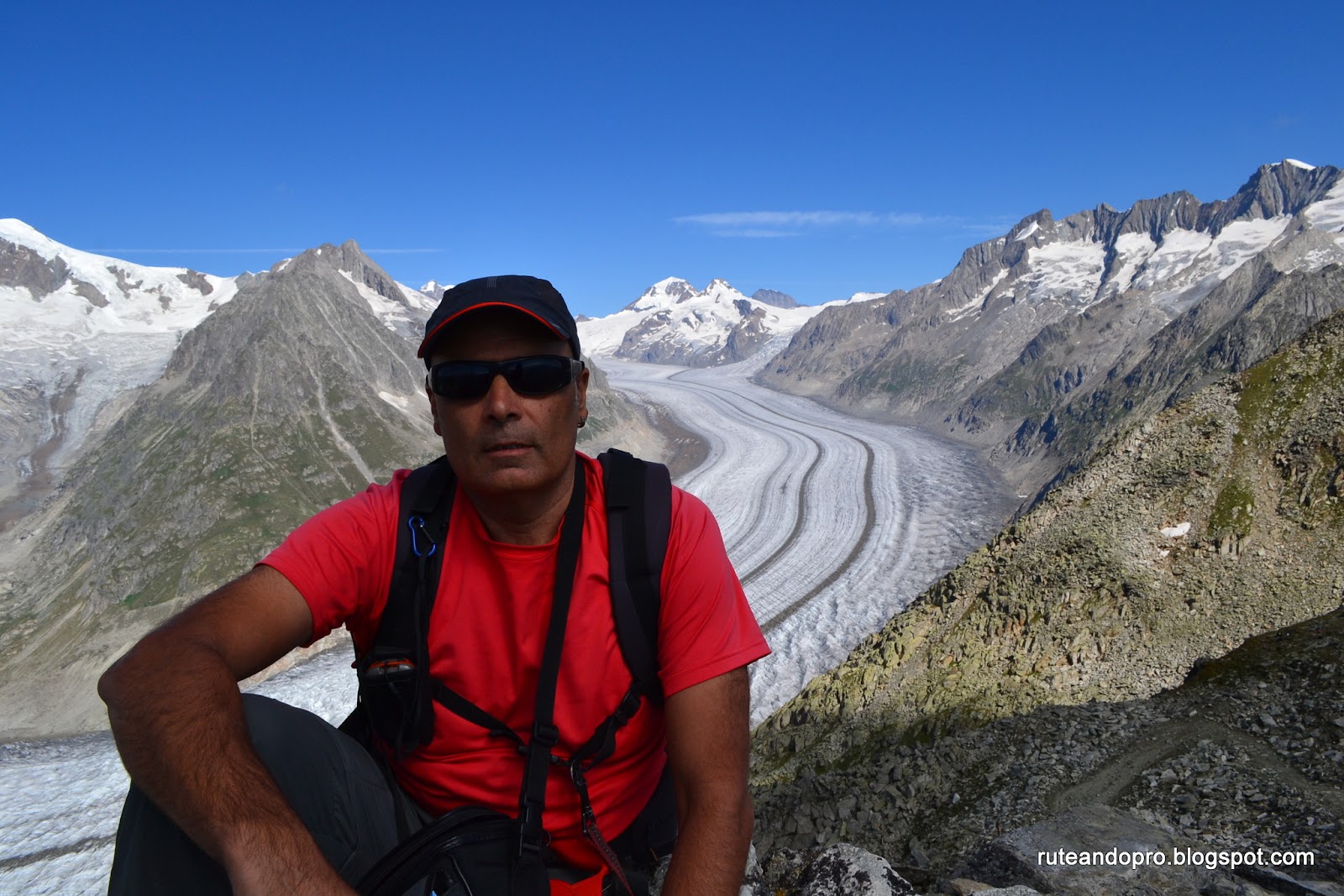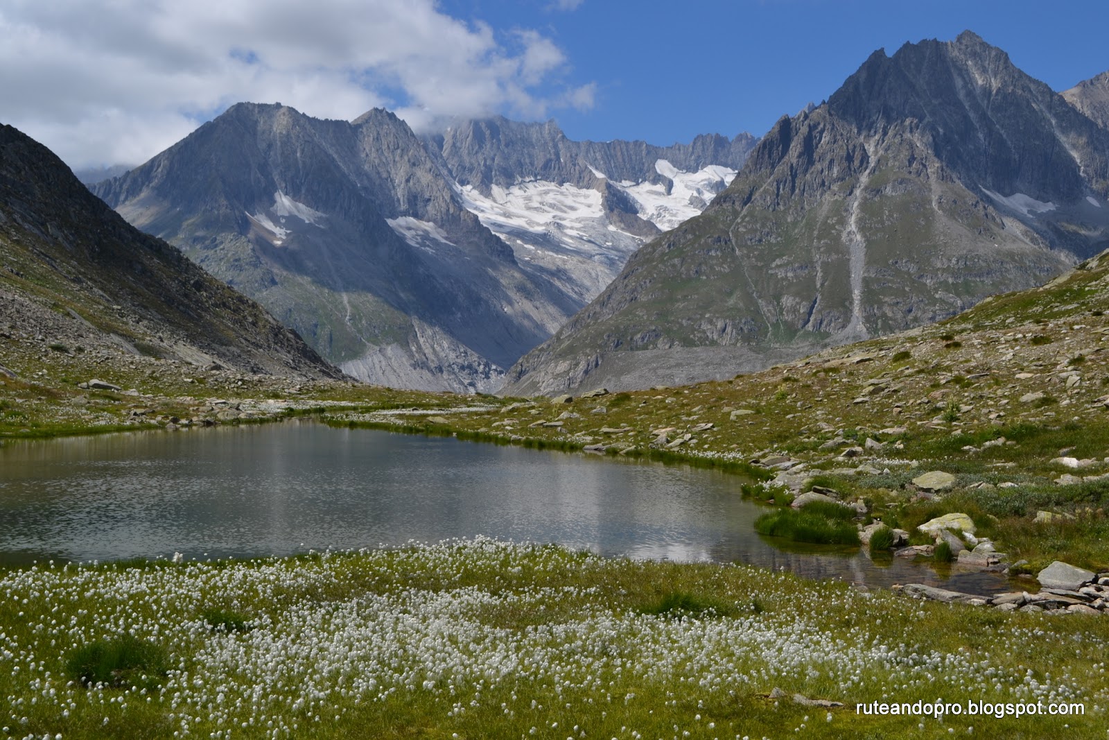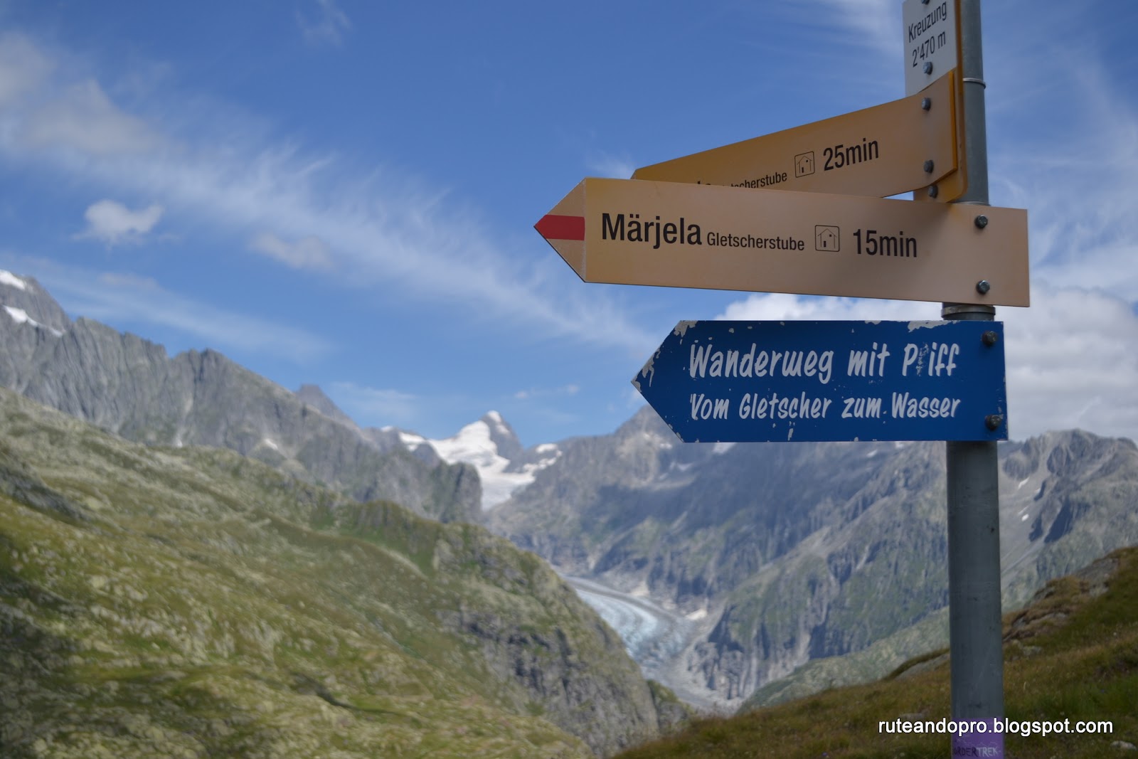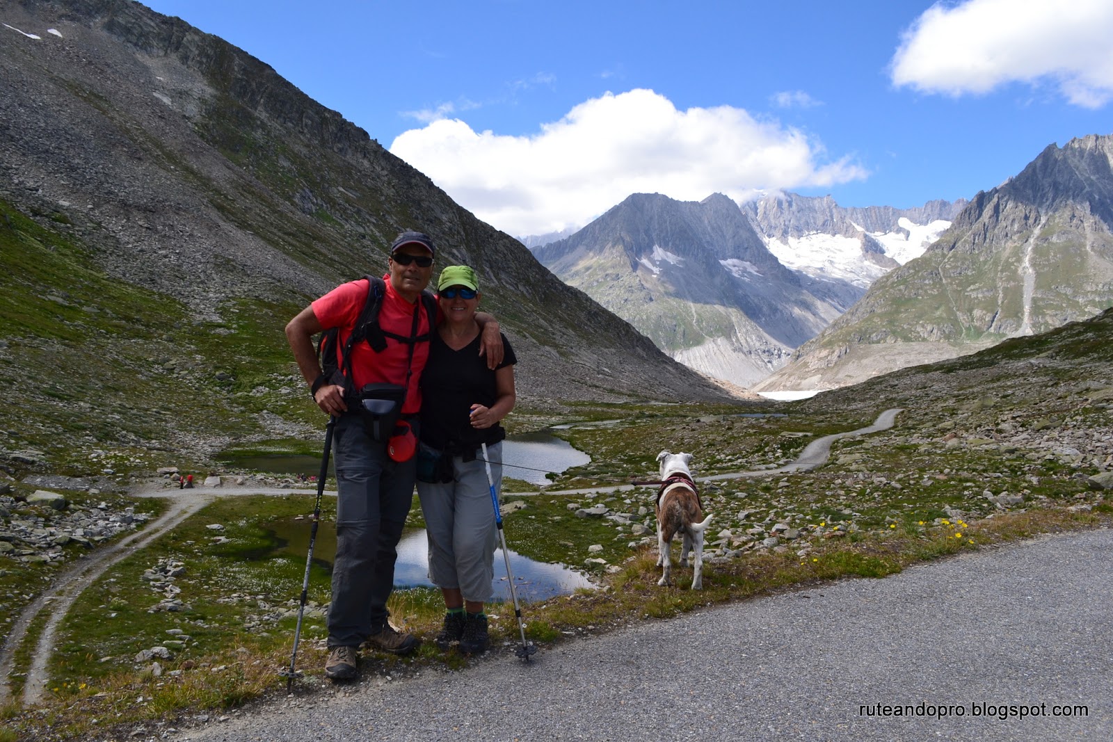Al final la ruta que optamos para el regreso baja el lago Marjelennsee y al refugio Glestsherstube, desde allí pasamos por un tunel llegamos hasta Fiescheralp para tomar el remonte de bajada.