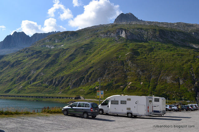 La carrtetera es estupenda muy ancha y aunque hay trafico no es agobiante. La ruta la realizo en menos de tres horas. Pasamos parte de la tarde en el mismo sitio donde estamos aparcados, por la tarde subimos hasta Grimselpass donde hay mucho sitio para aparcar la ac.