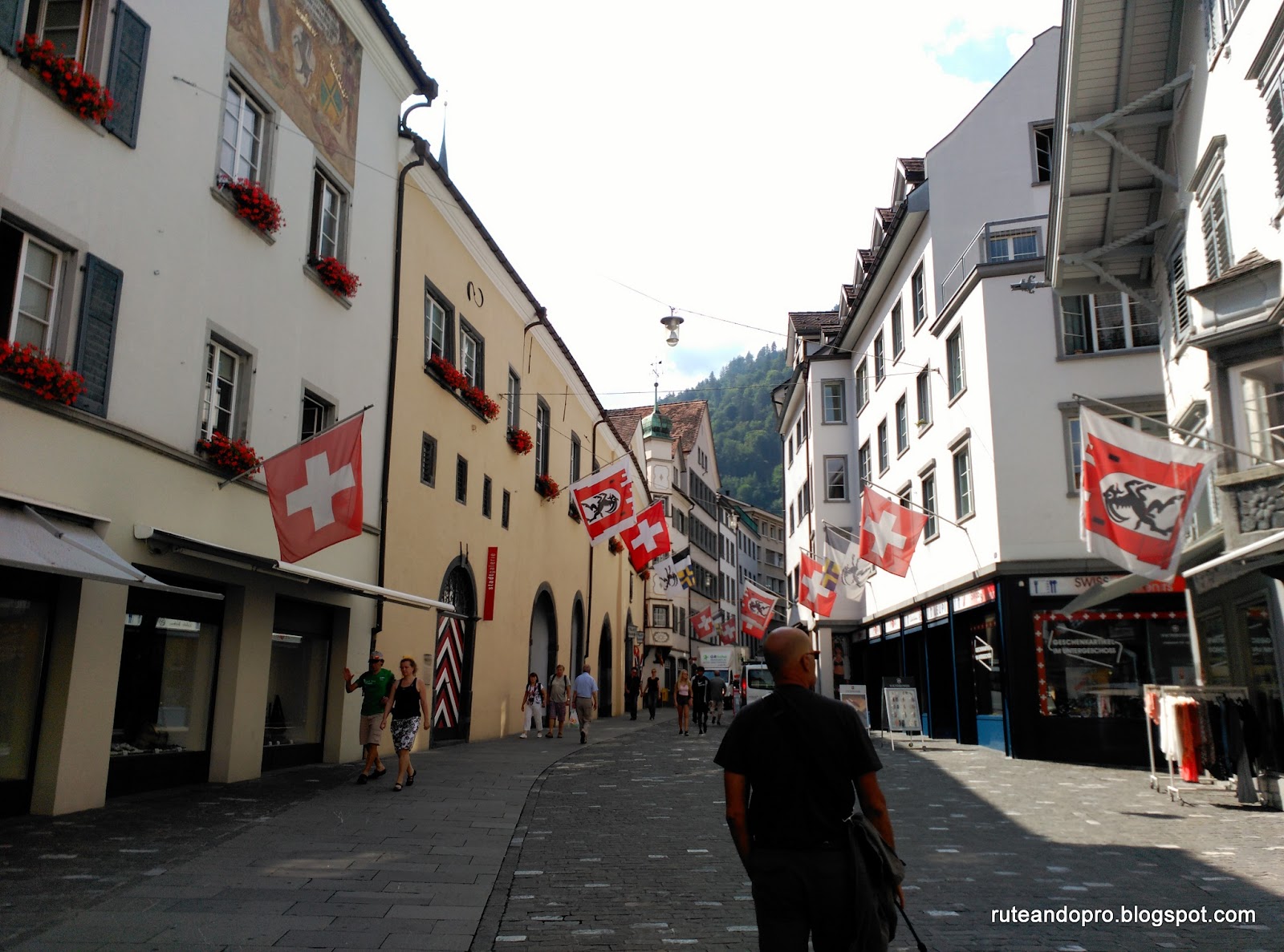 Amanece con lluvia, así que dejamos el senderismo para otro día, arrancamos las Ac y nos dirigimos hacia Chur, llegamos temprano y aún no estan abiertos los comercios, pero nos damos una vuelta por su casco antiguo, merece la pena la visita. Al rato de estar por ellí empezaron a abrir los comercios, en un momento las calles empezaron a tener vida, había gente por todas partes.