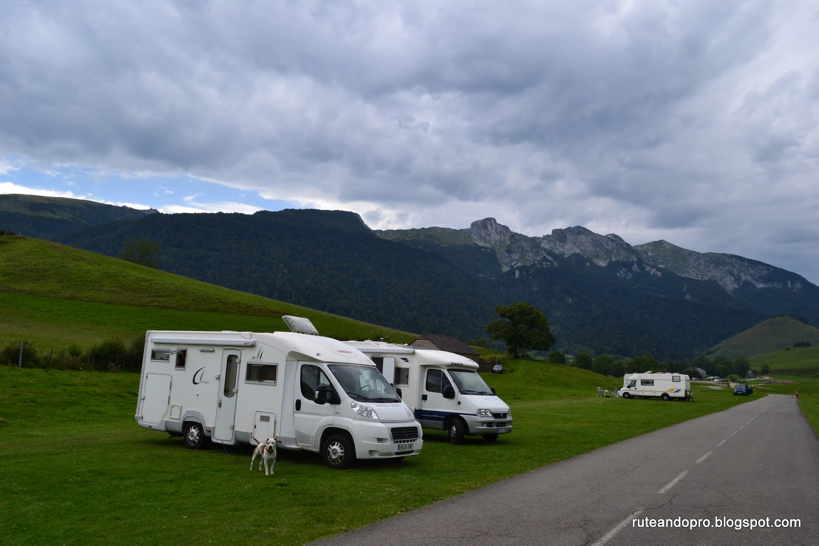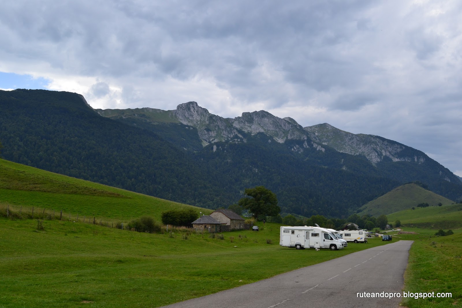 Al llegar a Laruns el area la han puesto de pago, así que nos vamos a dormir a un pequeño parking que hay justo en el comienzo del Col de Aubisque y el Col del Pourtalet, mañana saldremos en bici.